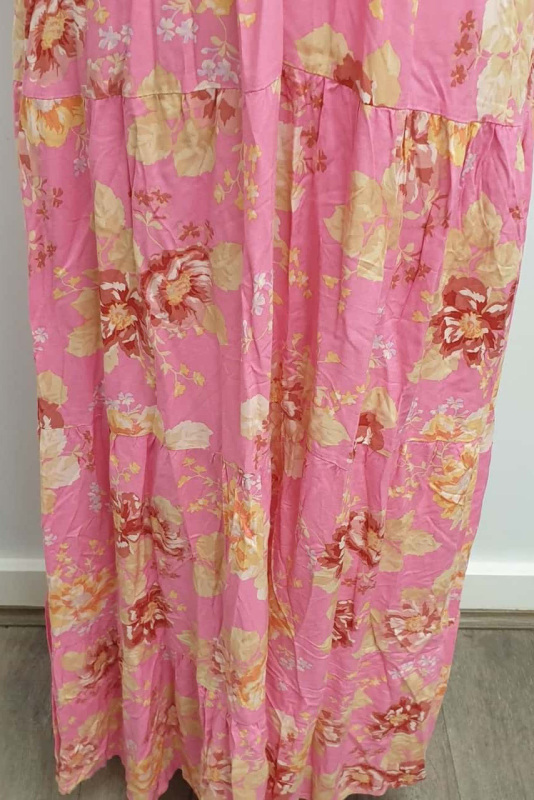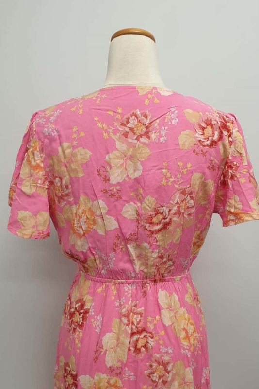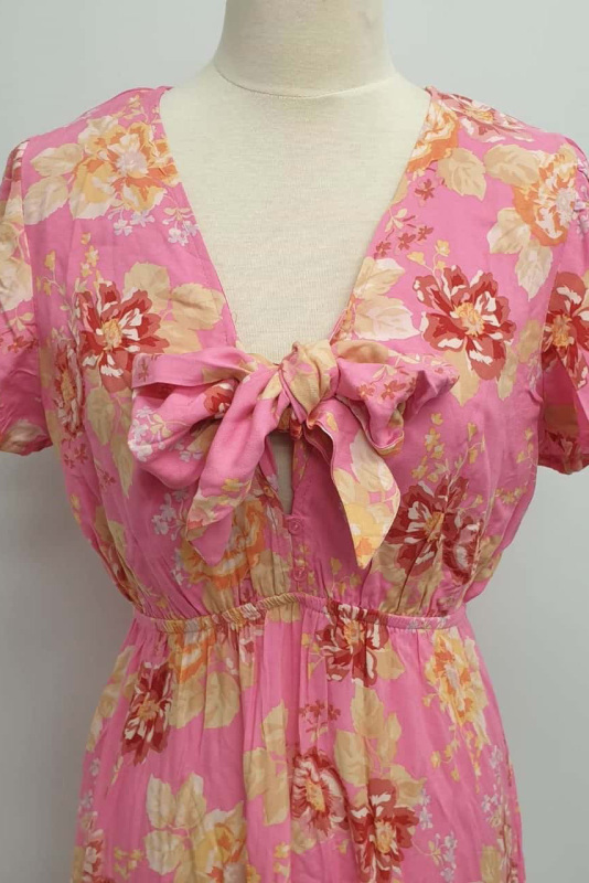 • Retro court floral print V-neck lace-up short-sleeved long dress