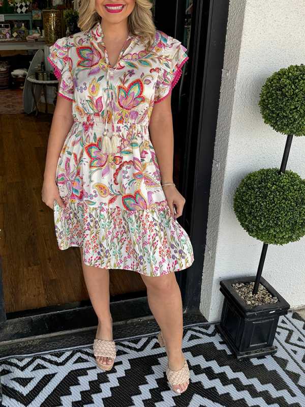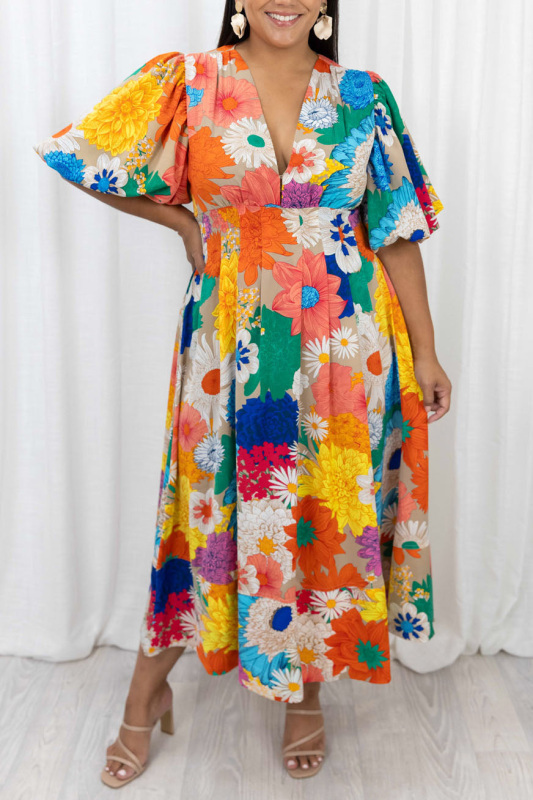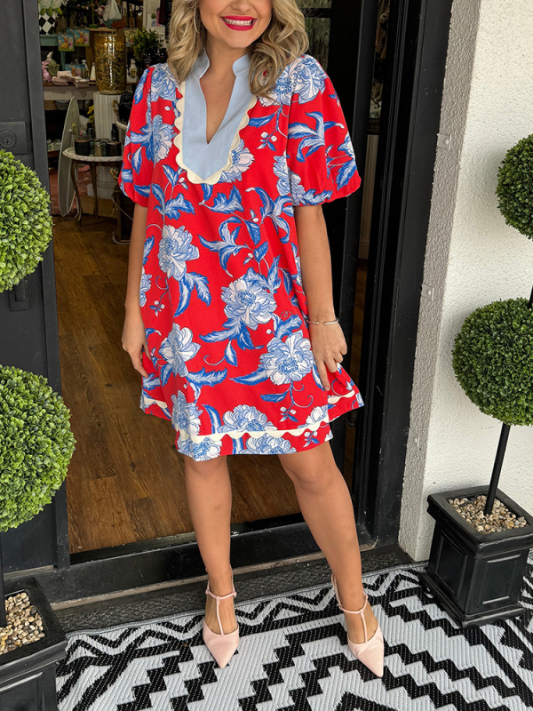 EUROPEAN SUMMER FLORAL PRINT CASUAL DRESS