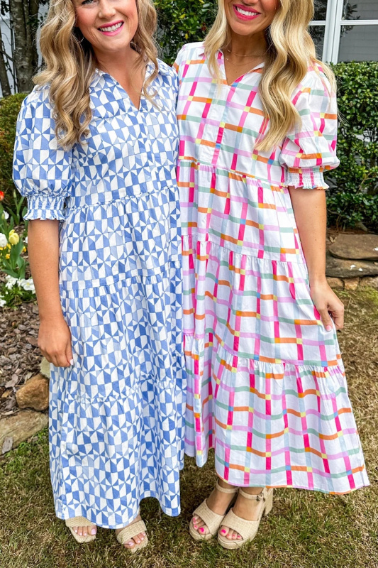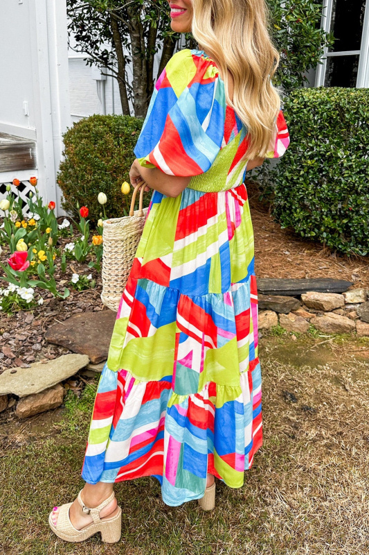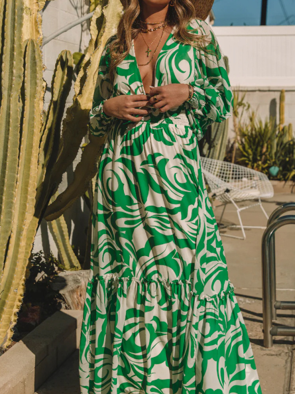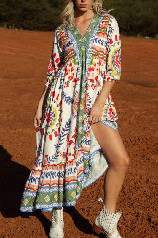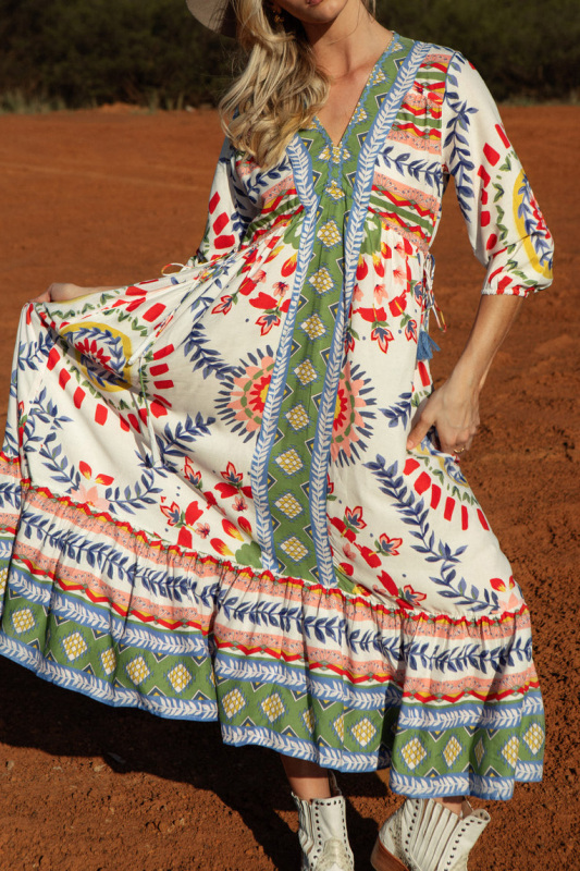 Holiday retro totem hanging printed three-quarter sleeve long dress