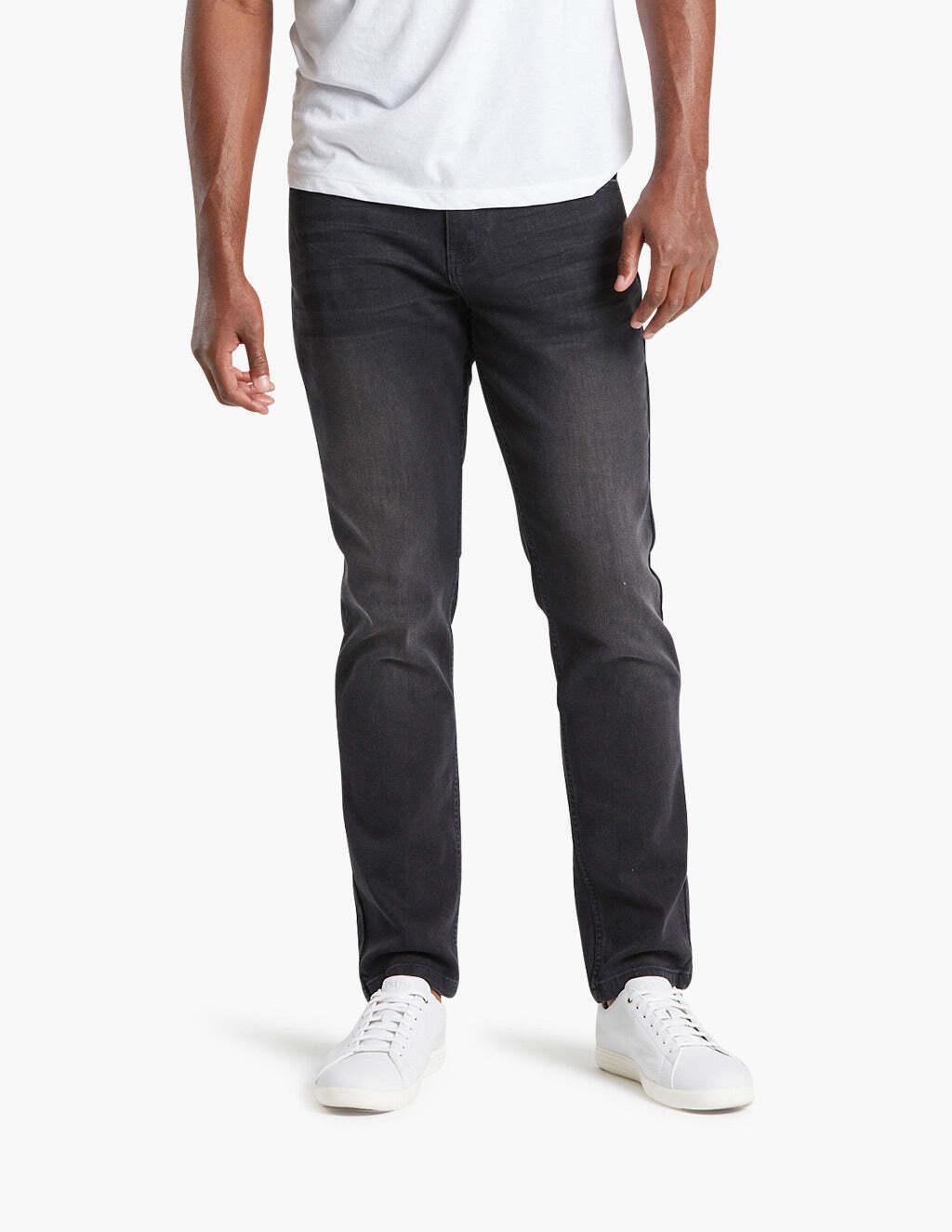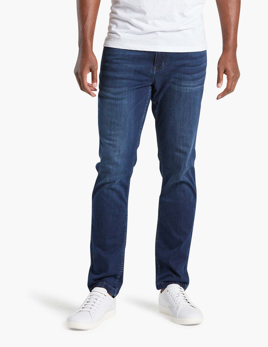 Sits low on the waist. Fitted, but not tight through the hips down to the thighs with a narrow leg opening. Slim but not skinny.